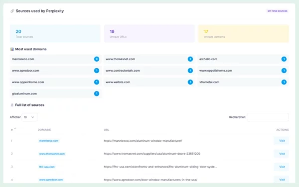 Unser GEO-Audit zeigt Ihnen die Quellen, die KI-Systeme zur Beantwortung jedes analysierten Prompts verwenden. Diese Erkenntnisse helfen Ihnen, gezielte Backlinks zu setzen, um Ihre GEO-Sichtbarkeit zu stärken.